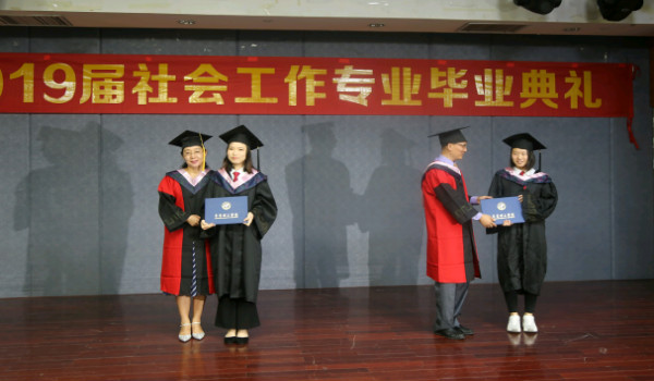 6月16日早上,sunbet申搏在莞城校区小剧场举行2019届社会工作专业毕业典礼。党总支书记杜应发、党总支副书记丘永辉,副院长朱晓红,社会工作系主任成伟,学工办主任钟丽华,张燕婷老师、邹朝春老师、张雪老师、黄俊辉老师、张子庄老师,,辅导员刘海波、邱可荣、邹欢出席了本次典礼。