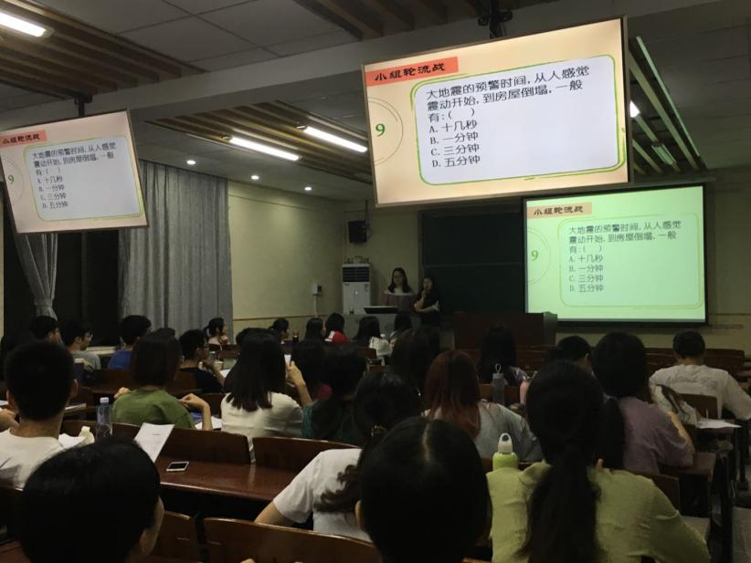 4月30日上午,在主讲老师的指导下学生直接组织和参与的公共危机管理知识竞赛热火朝天进行。学生提前准备相关知识题目,分配好主持人和裁判等角色。最终,经过小组轮流站、小组抢答战和终极站三个比赛环节,最终决胜出一等奖、二等奖、三等奖和优秀奖若干组。最后,主讲老师丁淑娟博士为同学们颁发奖状,并和同学们合影留念,留下师生共同的怀念。整个知识竞赛活动紧张有序、又不失活泼轻松,既有利于同学们增强公共危机管理的基本理论知识和技巧知识,又有利于构建新型教学关系,实现寓教于乐、寓教于学。学生在组织活动的过程中增强了策划组织能力、团结协作能力。