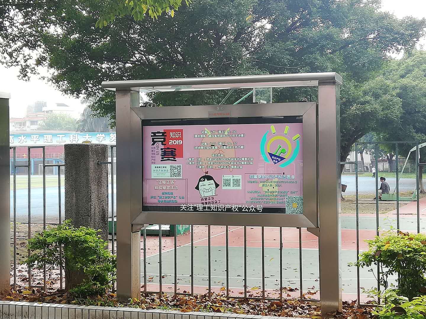 此次活动,理工学院一改往年“摆摊设点”的传统宣传模式,着力打造传统宣传和新媒体“小晒同学”电子屏幕的“轮番上阵”的轰炸式效果,印有“保护知识产权、知识产权竞赛、正版正货漫画设计大赛”等宣传内容的16块电子屏幕在松山湖校区与莞城校区,反复进行霸屏播放。“知识产权的蓝天白云”覆盖了整个大学校园。