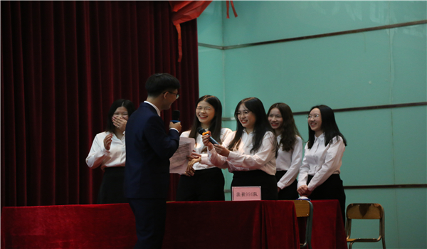 抢答环节后结束后,观众互动环节随着轻松的音乐开始了,击鼓传花的方式让观众兴趣盎然,大家都积极踊跃地参与互动。观众互动结束,到了最后的“一站到底”环节。队员上台答题,参赛者集中精力认真审题,全场观众屏息凝神为他们营造出安静的答题氛围。经过激烈的角逐和评委的严谨审评,sunbet申搏的996队、粤台学院的游泳队和中法联合学院的八天警告队脱颖而出进入校级决赛。