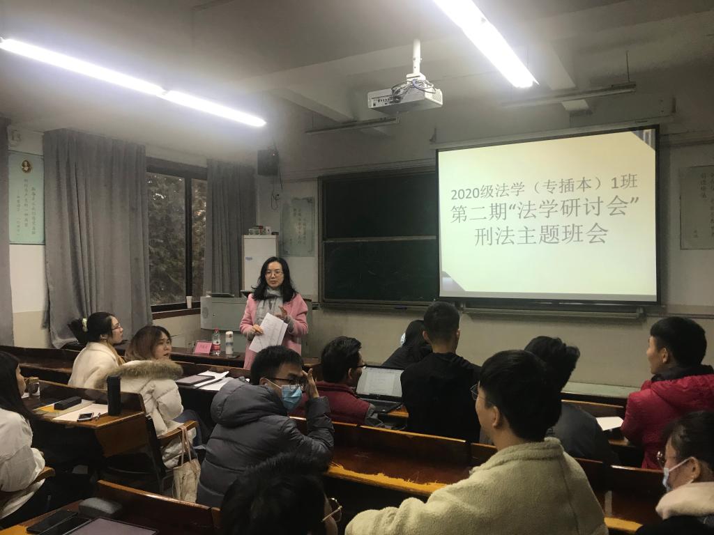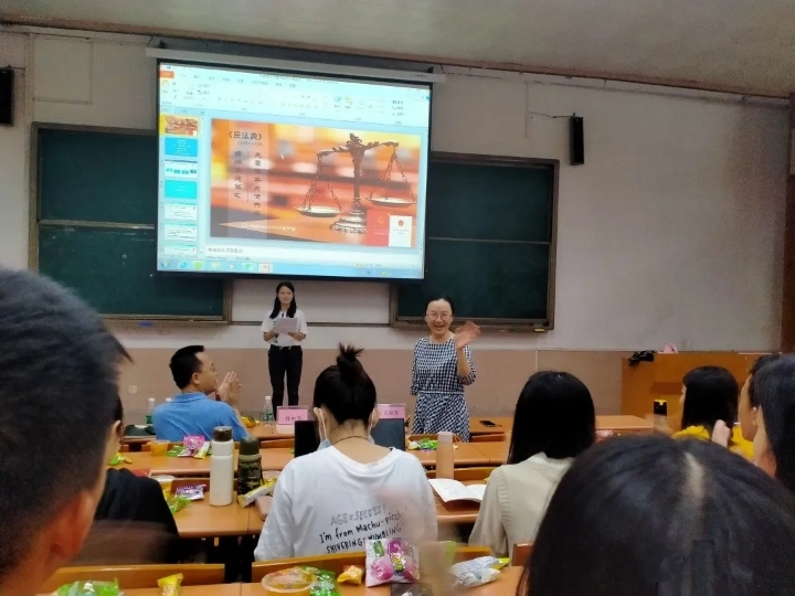 10月22日下午,2020级法学(专插本)1班在莞城校区第一阶梯教室举行了《民法典》研讨会。本次研讨会旨在学习民法典精神,对接地方法制建设需求,营造学习法典并运用法典、崇尚法典的良好学习氛围。参加研讨会的嘉宾有吉海荣老师、龚红兵老师以及韩中节老师,通过对共签共债、参加危险活动损害赔偿、高空抛物以及婚内出轨四个话题的分享现场师生学术探讨交流以及老师点评,营造了良好的学习氛围,提高了团队学习能力。同学们在这场民法典研讨会上收益颇丰! (民法典研讨会)
