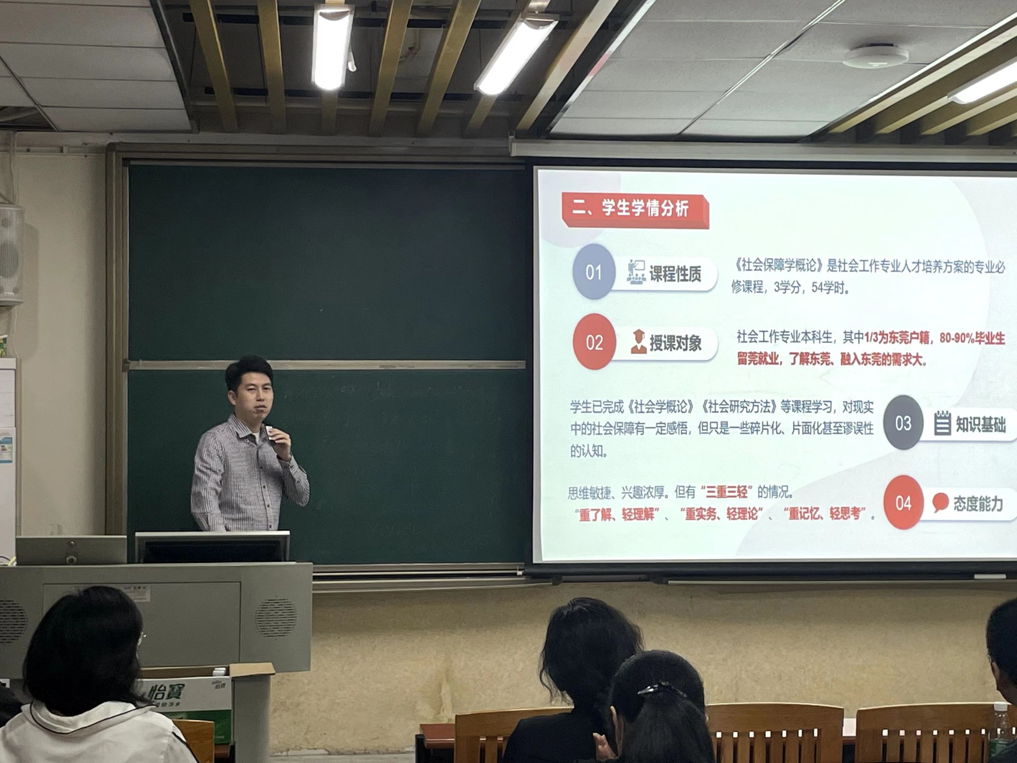 为贯彻落实立德树人根本任务,增强为国育才、为党育人使命信念,提高巩固高素质应用 型人才培养成效,sunbet申搏于11月3日下午在在莞城校区5308教室举行了主题为“担强国责 育报国人”的课程思政课堂教学设计大赛初赛。学院党委书记杜应发、副院长朱晓红以及教学指导委员会评委、参赛的师生代表共约20多人参加了此次比赛。