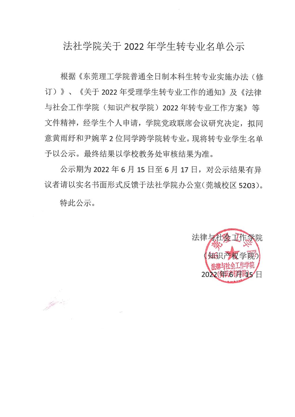 sunbet申搏关于2022年学生转专业名单公示