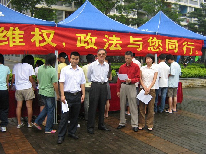 关注大学生就业,共创法律维权天空”为主题的大学生就业维权普法宣传活动在下沉广场展开。本次普法宣传活动获得了政法系各领导的重视,政法系系主任李洪君教授,政法系党总支副书记潘荣新老师,政法系辅导员吴进老师、陈晨老师,政法系学生会主席罗志凯等参与了此次活动。