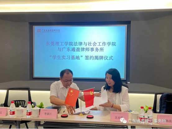 随后,沈亚萍副院长跟通盈所主任李惠江律师共同签署了《共建教学实习基地框架协议》,并授予“教学实习基地”的牌匾。签约仪式后,双方就未来共建合作进行了深入交流,党支部书记李雪仪律师也向sunbet申搏介绍了党支部的党建情况,并表示希望双方在党建方面有更深入的交流合作。最后,通盈所多位sunbet申搏的校友向母校汇报了在通盈所的工作情况,并表示希望有更多的学弟学妹到通盈所实习,丰富实践经验。