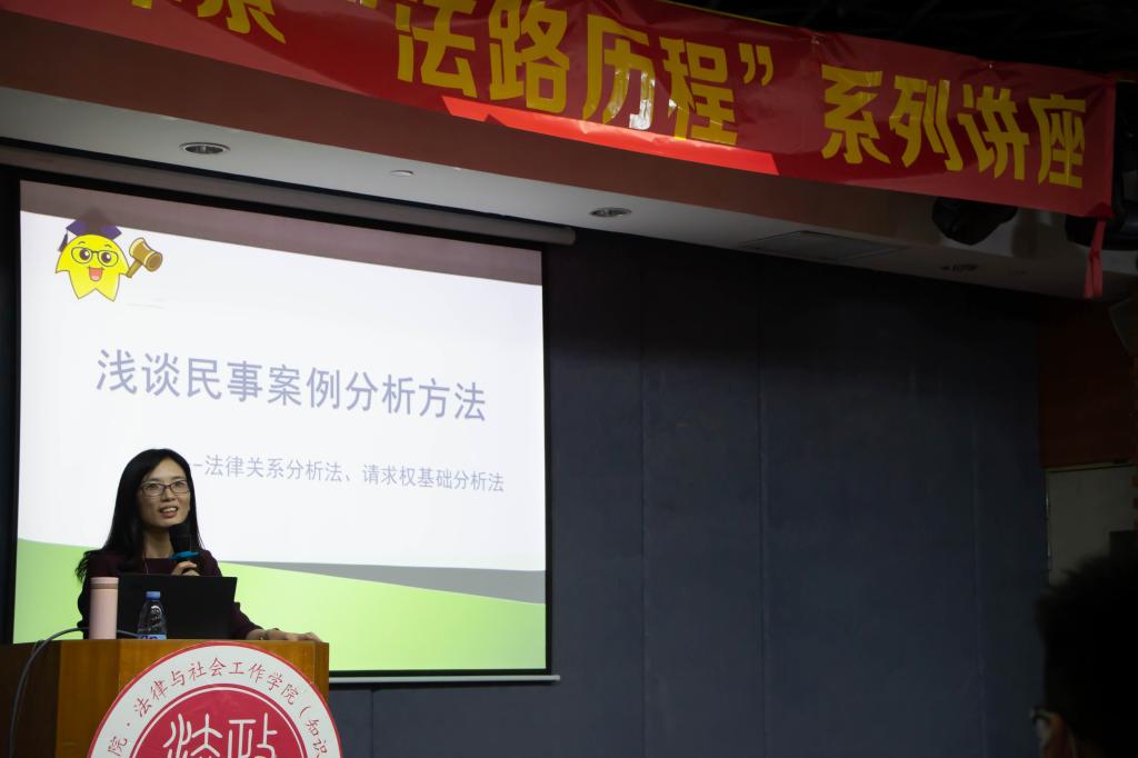 讲座中,李铮铮法官凭着自己从事民事审判业务工作14年积累的经验和丰富的阅历,深入浅出地给大家讲解及分析了法律关系分析法与请求权基础分析法。不仅分别讲授了两种方法的概念、要素与运用步骤,而且强调了请求权基础分析法作为“民法利器”在实际运用的重要性。李法官以6组真实民事纠纷让大家进行思考,引导思路,让同学们意识到夯实法理学基础的重要性,体会到自己分析案例带来的查缺补漏的益处。同学们学习态度热情高昂,认真思考案例提出观点,勇于提出疑问,积极地和李法官进行互动,现场气氛十分活跃。