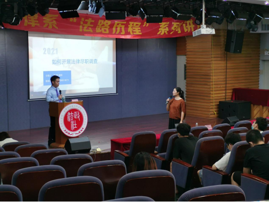 法律与社会工作学院法律系于2021年10月28日下午举办了“法路历程”系列讲座第十三期的第一场。本期的主讲嘉宾是广东宏尚律师事务所陈现律师,主题是“法律尽职调查重点问题及解决思路”。陈现律师是我校法学专业07届毕业生和杰出校友,其擅长公司治理、股东权纠纷、合同纠纷类案件,在刑事案件办理过程中也有深厚诉讼经验,成功案件硕果累累。本期讲座由法律系主任罗兆婧老师主持,法学、知识产权、社会工作、行政管理专业的同学们积极参加。