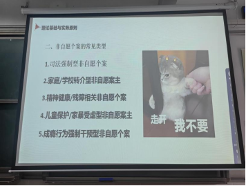 2025年5月8日,sunbet申搏特邀东莞市社会工作协会中级督导、国家三级心理咨询师何柳莹老师在6301教室为2023级社会工作专业的学生带来了一场主题为《非自愿个案有效会谈及介入策略》的课程分享。此次活动旨在通过实务专家的分享,帮助学生们更好地理解非自愿个案的实际操作流程和策略,促进理论知识与实践应用的有效结合。