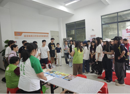 小河村与闸口村的综合养老点同样亮点纷呈。这些养老点设施齐全,环境宜人,为老年人提供了日间照料、康复保健、休闲娱乐等一站式服务。小河村综合养老点的 “一站六区”布局(娱乐区、康复区、助餐区等)展现功能集成化优势,78 岁老人陈婆婆正在智能康复器械上进行训练:“每天来这做理疗,比去医院方便多了。” 闸口村点则让师生们看到了更多相关养老产品的研发以及与本地特色资源的结合,通过对本地特色景点的开发,吸引游客并改善老年人居住的社区环境。活动现场,师生们还获赠含道滘文旅地图的研学手册与增值产品,直观感受养老服务与本土文化的融合。