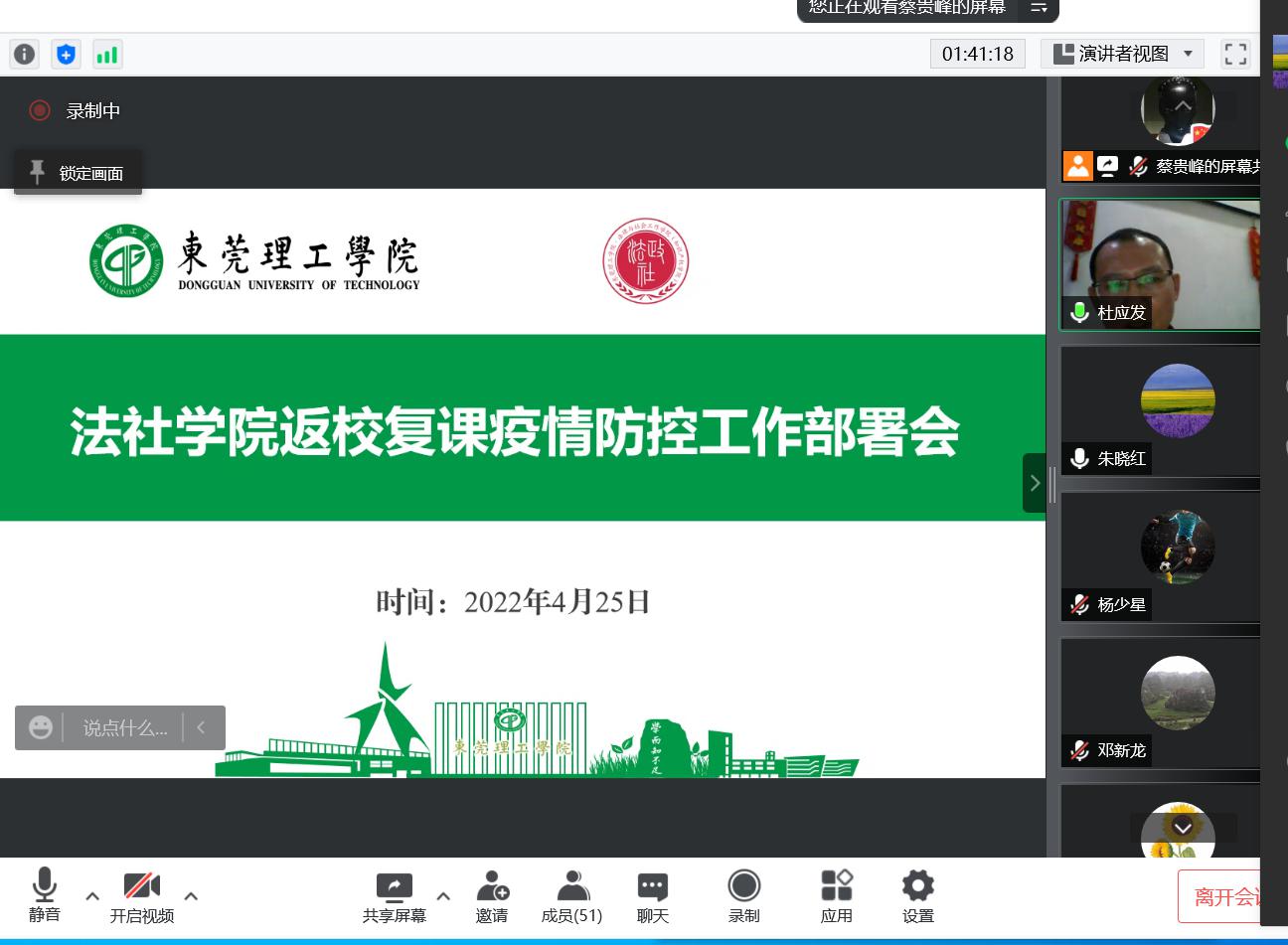 为全面贯彻落实学校关于新冠肺炎疫情防控工作部署,全面做好学院师生员工返校工作,4月25日晚,sunbet申搏在腾讯会议上召开全院大会,落实部署返校复课疫情防控工作。会议由sunbet申搏党委书记杜应发主持,学院全体教职员工参加了本次会议。