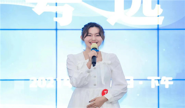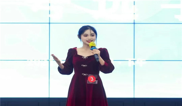 一场成功的演讲,不仅需要言谈举止大方自然、充满自信、镇定自若,还要细细观察观众的反应,与观众进行眼神交流,深入观众的内心。初赛时,刘芊芊同学优异的表现力便感染了现场的所有评委和选手,出色的主持业务能力和临场应变能力让她取得了院赛一等奖。在之后的练习过程中,她精心准备,细细打磨,锐意创新,刻苦训练,以积极心态面对每个建议,用热情之火点燃绚烂青春。比赛现场中,她揣摩评委心理,细心倾听其他选手的演讲过程;站在舞台上,她以自身经历为引,强调“剧本杀版权亟待有力保护”。“剧本杀”这一题材不止刘芊芊一个人讲,却只有她脱颖而出,那是因为她知道,演讲不应是机械性的背稿,而是要用最朴素的语言打动人心,让自己的文字走进听者心里。舞台中央的她,自信满满地享受着属于自己的高光时刻。
