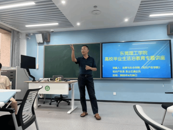 为了更好地帮助即将毕业的2023届大学毕业生融入社会,预防其在就业过程中的法律风险,2023年6月28日在莞城校区6201教室,法律与社会工作学院(知识产权学院)的龚红兵老师为为2023届高校毕业生讲授法治教育专题讲座。