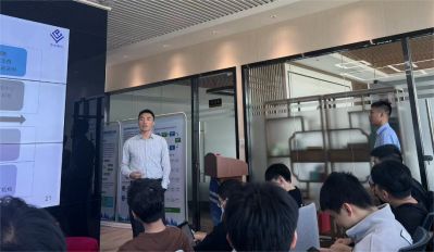 在广东省华中粤创知识产权运营管理有限公司,龚主任和同学们受到了叶文俊总监的热情接待。叶总监首先介绍了华中粤创作为东莞新能源产业知识产权运营服务平台的运营单位,在2023年度里取得的优异成果,华中粤创助力东莞市专利转化需求对接工程进展顺利推进,实现了高校与企业的“双向奔赴”。
