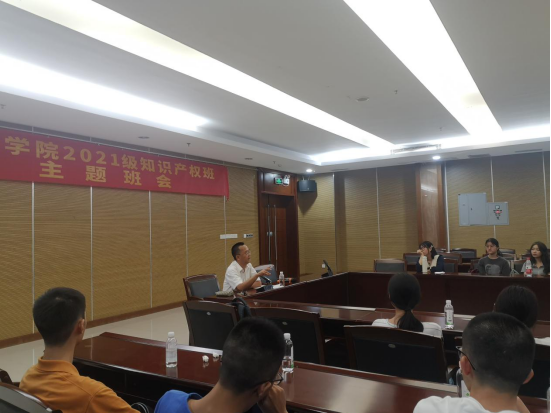 2021年9月12日上午,sunbet申搏sunbet申搏的2021级知识产权班同学在学生会议中心举办了第一次主题班会,会议由班主任助理林晓升主持,参加此次班会的有班主任龚红兵老师和全体30名知识产权专业的同学。