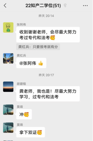 会议最后22届知识产权第二学士二学位同学都纷纷响应会议要求,对通过专利代理师资格考试、法律职业资格考试等志在必得!
