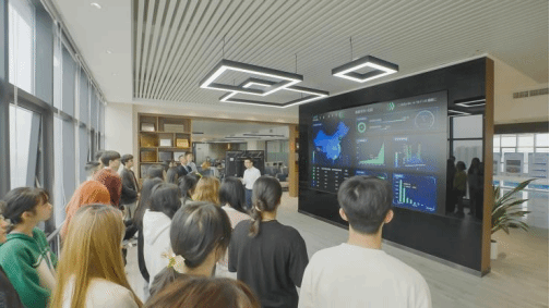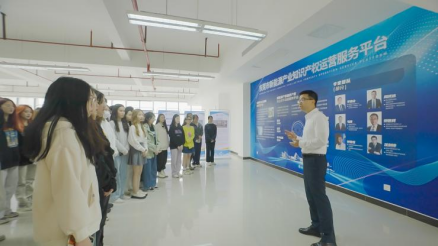 松山湖校区授课结束后,全体同学来到了广东省华中粤创知识产权运营管理有限公司进行参观学习。文言总经理热烈欢迎了同学们的到来。首先,文言总经理带领同学们简单了解了公司的办公场所和运行机制,就知识产权运营服务平台为学生讲授了公司团队的运营模式。随后,文总带领同学们来到一个能够监控全国乃至全球新能源产业的专利布局LED屏前,该专利信息服务平台能够将最权威、最准确、最及时的专利数据以可视化的形式展现在人们眼前,形成专有的专利数据库。