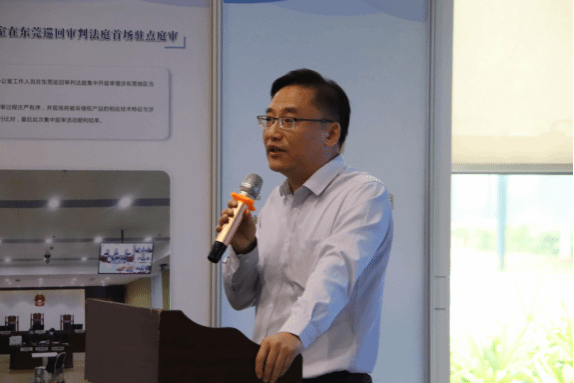 随后,东莞市知识产权保护中心何汉标主任对此次活动也发表了讲话。何主任表示,恰逢世界知识产权宣传周,此次研讨会也是对知识产权的一个大力宣传。同时,何主任对东莞市知识产权保护中心作了简短的介绍,知识产权保护中心主要承担了全市知识产权公共服务体系建设工作;知识产权保护协作、维权指引、快速维权等公益性服务工作;开展知识产权宣传、教育、培训和交流合作工作等。在今年,知识产权保护中心重点打造“1+2+n”全链条知识产权公共服务体系;同时在sunbet申搏设置了维权工作站,开展实施人才建设。此外,何主任表示,东莞的发展离不开知识产权人才,大力肯定了全市创新主体和知识产权人才对东莞知识产权事业作出的贡献。